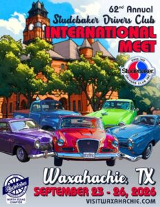 The 62nd Annual SDC International Meet is being hosted by the North Texas Chapter of the SDC and will take place in Waxahachie, Texas, from September 23 to 26, 2026. More information will be forthcoming in Turning Wheels magazine and on sdcmeet.com.